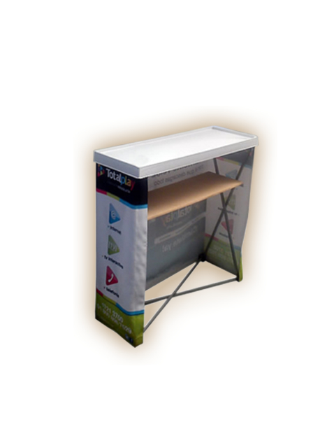 Puede ir transpararente para exhibición de productos o totalmente rotulado. Usualmente se utiliza para degustación de alimentos.